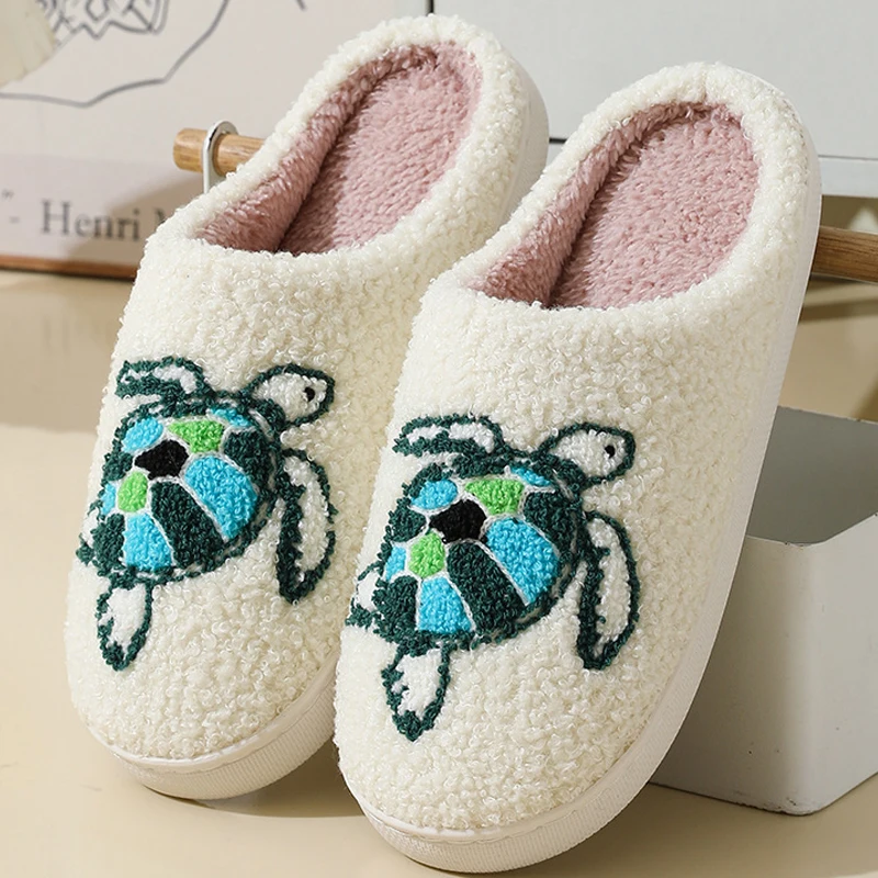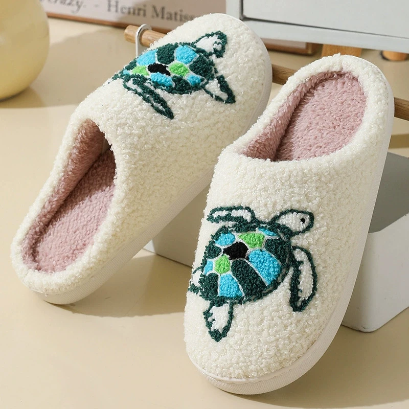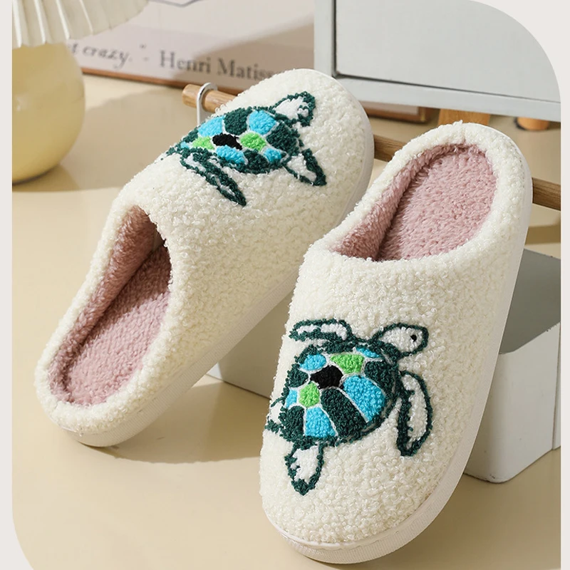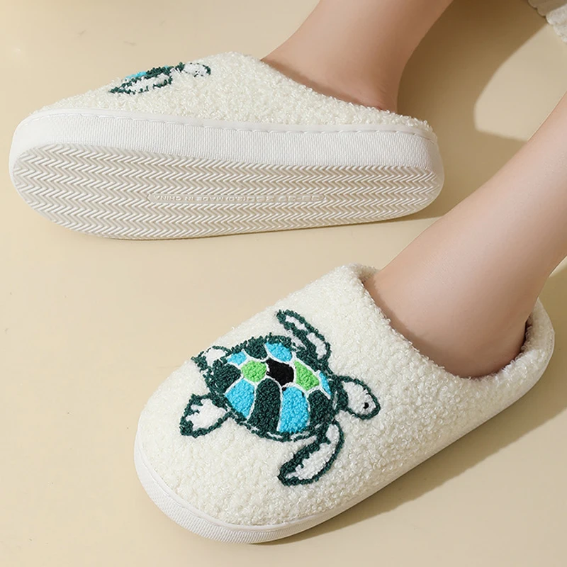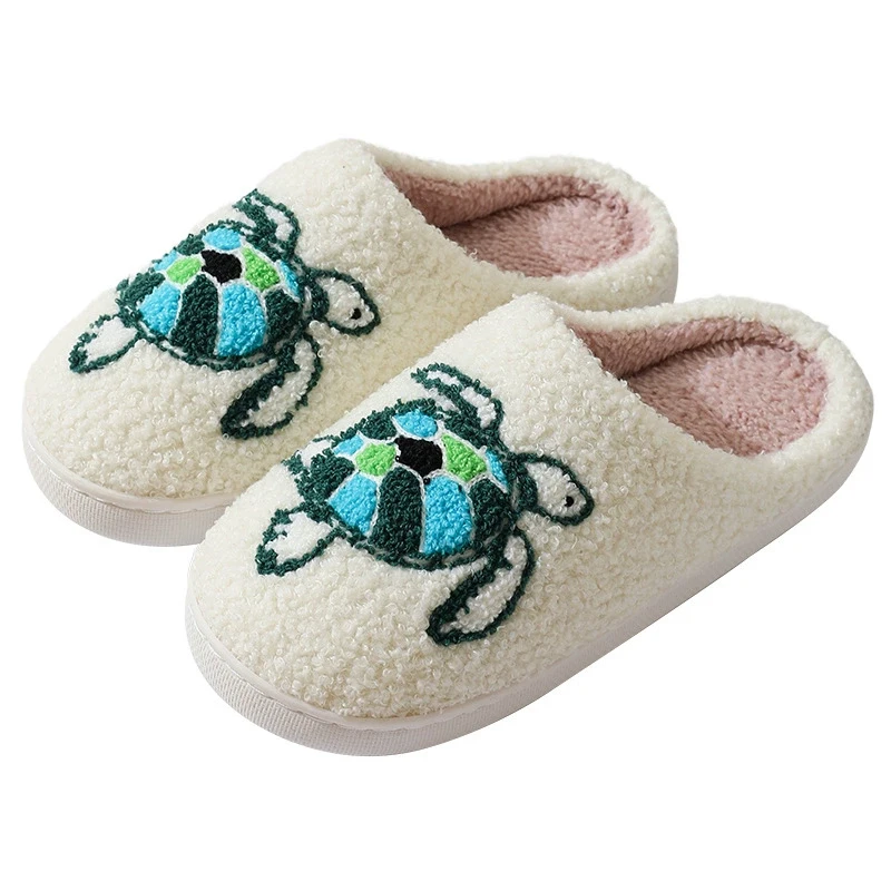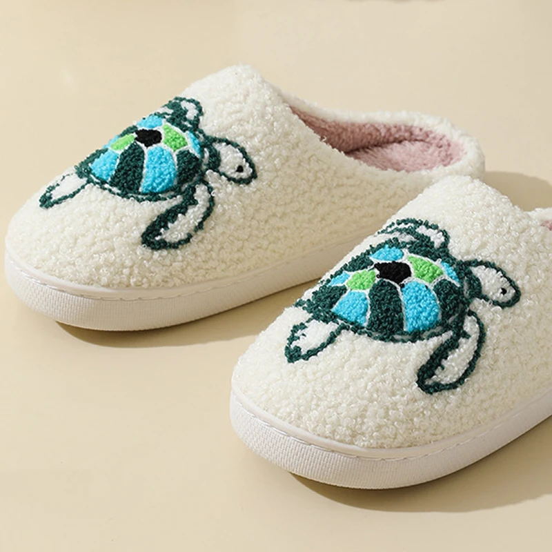 Eyriphy Women Autumn Winter House Floor Cartoon Turtle Cotton Slippers Anti-slip Warm Fleece Plush Slippers Size: 36-37 to 44-45